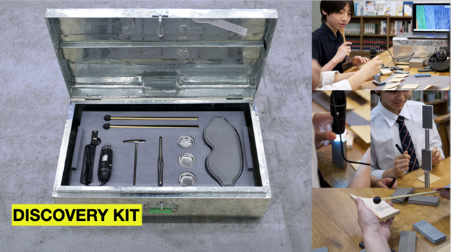 バタフライより提供された“余材”を元に、新しい視点の発見を促す“ディスカバリーキット”を使って、素材の色や質感、形の特徴を観察。
