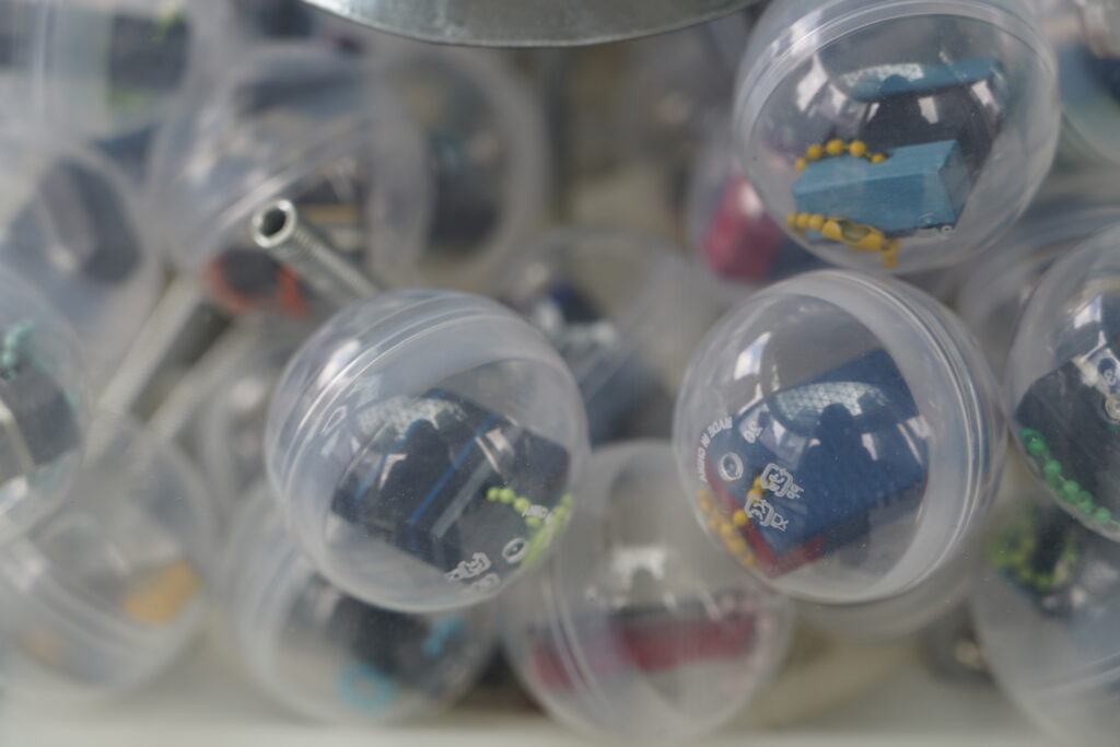会期中は、中学生メンバー6名も実際に運営に立ち合い、積極的に来場者に声掛けをして、プロジェクトの取り組みを伝えました。5点マッチポイントの来場者vs中学生の卓球ゲームでは、中学生メンバーに勝った参加者は、ガチャガチャを回すことができ、余材のキーホルダーがプレゼント。