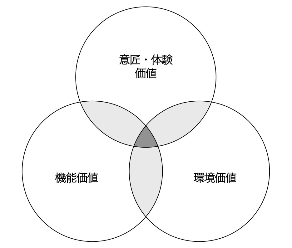 また、3つの輪で表現した「サーキュラーデザインで相互に高めあう価値」を説明する図*2は、オリジナルで作成したものです。これまで環境負荷低減を価値として提案してきましたが、それだけではコンペで勝てない時期が続きました。確かに貢献できている実感はあるのに、結果にはつながらない。なぜだろうと考えたとき、サステナビリティだけでは選ばれないことに気付いたのです。求められていたのは、既製品と同等のコスト、優れたデザイン性、そして使いやすさ。サステナビリティは大きな付加価値ですが、それだけでは不十分です。