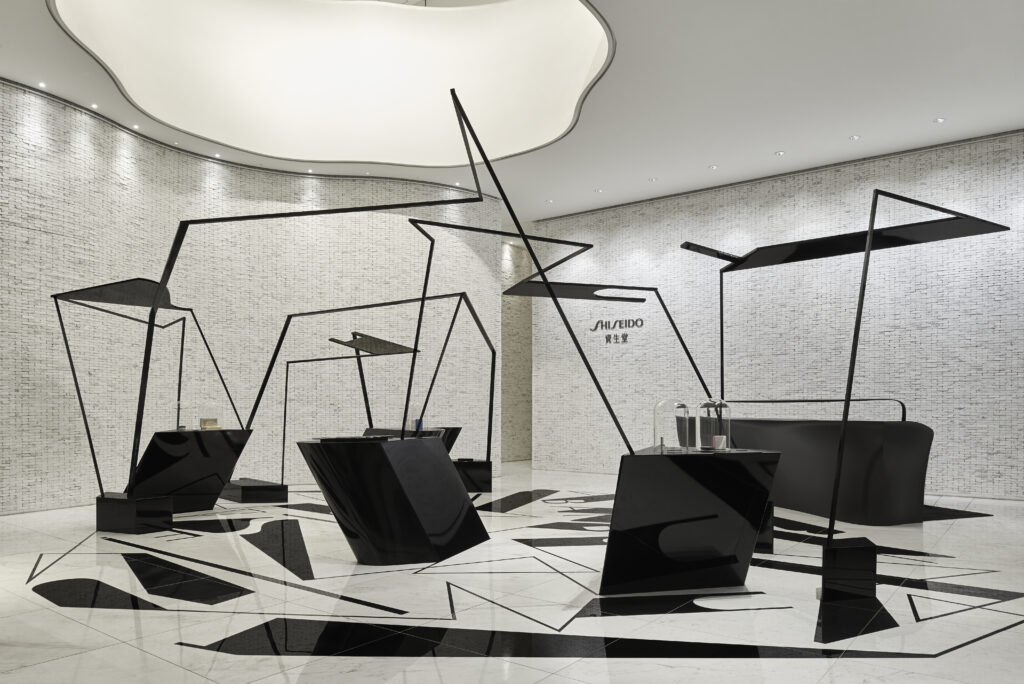 熊崎:私は、資生堂ビルの店頭ディスプレイも印象深いですね。(※3)ヒラミヤとはエントランスの什器制作で協業しました。もともとエントランスの床に描かれていた資生堂の象徴的なモチーフである唐草模様を、展示什器として立体的に表現しています。