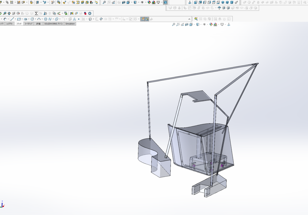 強度解析などを重ねながら、金属の重さで発生するたわみを計算し、デザイナーさんと細部を話し合ってフレームの太さや角度などを調整していきました。