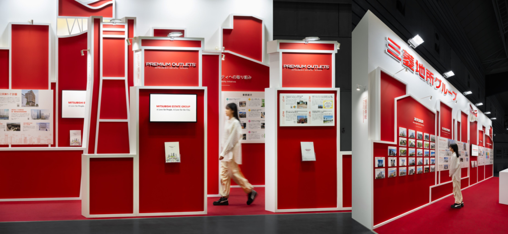 これにより、情報を一方的に伝えるのではなく、来場者が自ら「覗き込む」という能動的なアクションを通じて、楽しみながら三菱地所グループの強みや「らしさ」を理解できる体験を創出。赤色を全面的に押し出したデザインは会場内でひときわ目を引き、ブース全体が三菱地所グループを直感的に体現する一つのコンテンツとなる空間を実現しました。