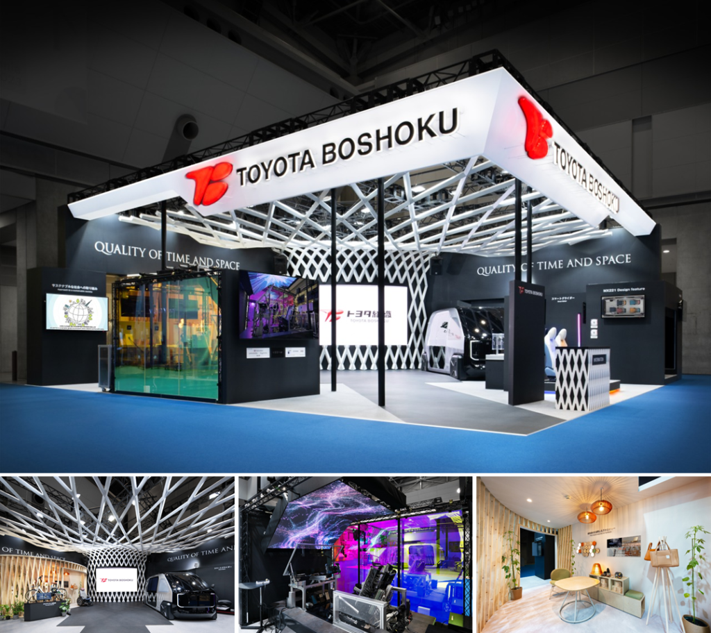 自動車用シート・内装部品メーカーであるトヨタ紡織様の「JAPAN MOBILITY SHOW 2023」出展事例です。今回の出展では「モビリティの技術が暮らしや未来まで広がる可能性を示す」という重要なテーマを、来場者に分かりやすく伝えることが求められました。