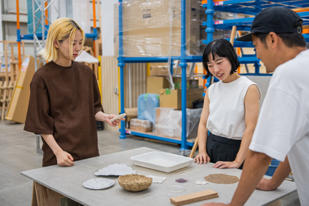 セメダインとしても、近年新しいことにチャレンジしながら製品のポートフォリオの転換を推進しており、中でもリサイクルやESGといった領域への関心の高まりを受けて、天然由来の素材を使ってなにかできないかと、その可能性を常に追求してきました。われわれはおもに自動車メーカーやゼネコン、工務店といった方々に向けて製品を供給しているため、we+や博展のようなデザイン分野との関わりはあまりなかったんですが、過去にホタテ貝殻を再利用した材料を使った接着剤開発などを通して海洋資源に着目していたので、今回のプロジェクトとの親和性の高さを感じました。