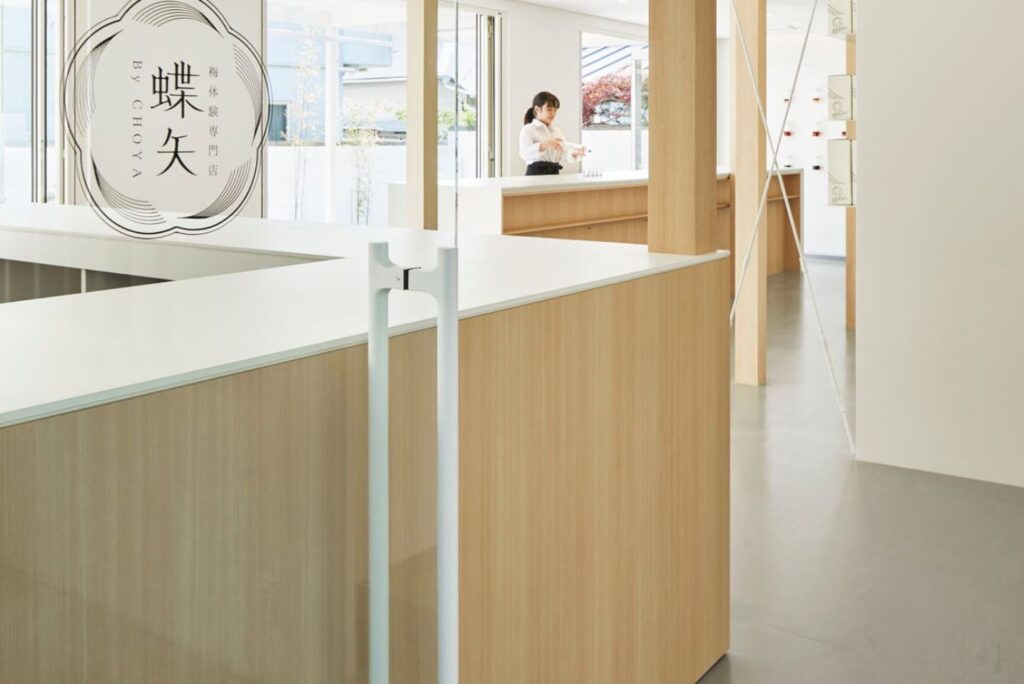 店内は白で統一されシンプルなデザインで、「梅と向き合う」という特別な体験に集中できる環境でした。