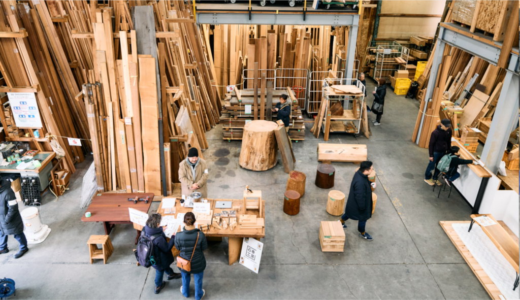 他にもウッドマーケットやアート×サイエンスのラウンジ、新木場ではおなじみのうみねこ食堂によるキッチンカーなど、新木場の個性を感じられる催しが開催されていました。大きな倉庫や機械、木材をひたすら見るツアーになるかと思いきや、「木」という共通したキーワードを持ちながらも事業が多岐にわたっていて驚きました。また、どのスポットでも企業の皆さんが温かく迎え入れて事業を紹介してくださったことが印象的です。