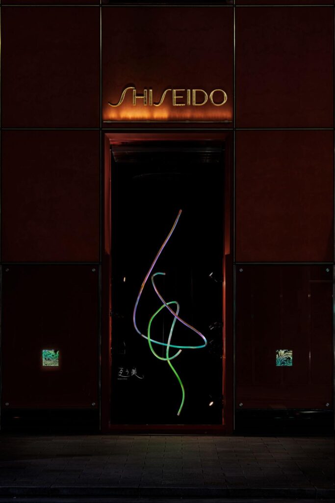 2025年5月〜8月にかけて、東京銀座資生堂ビルにて展示された「生命美」をモチーフにしたウィンドウディスプレイ「互う美」。博展は、資生堂クリエイティブの金内氏と共に、デザイン・デジタルディレクション・施工を担当しました。