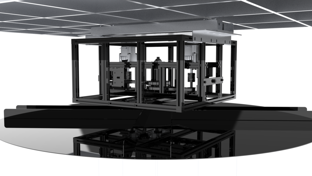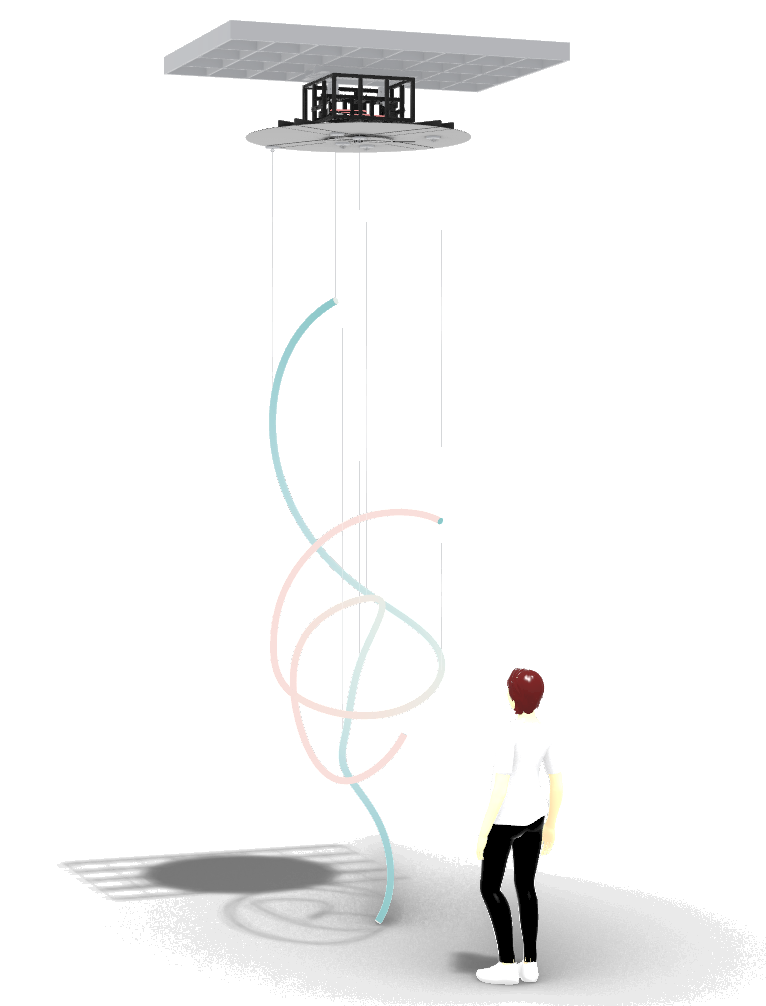 最終的には、HPCでの実験を踏まえて構造色の2本の美しいラインをベースに、空中に浮かんでHPCの2本のラインが絡み合うように動くことでハグを表現する、という方向性に落ち着きました。製作段階では、私はHPCのライン同士が絡み合うように動く”様子を表現するための動作装置の設計・製作を担当しました。特に工夫したのは以下の点です。
