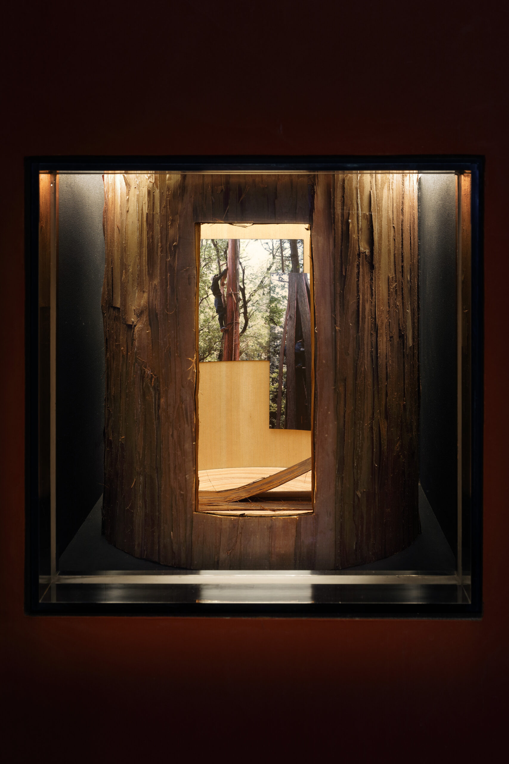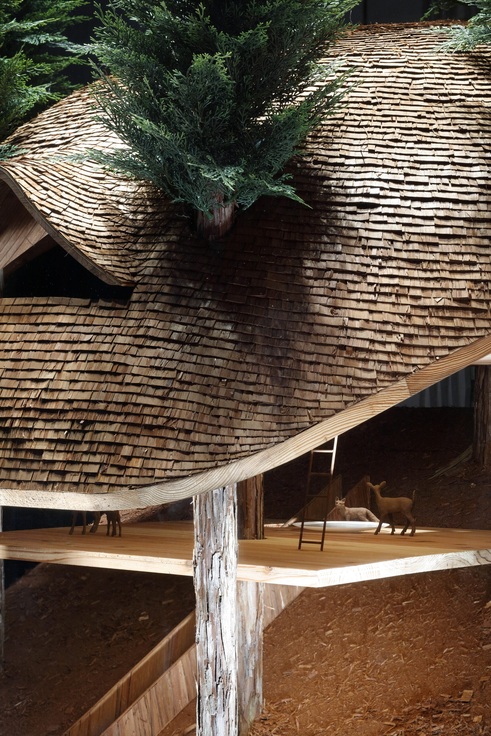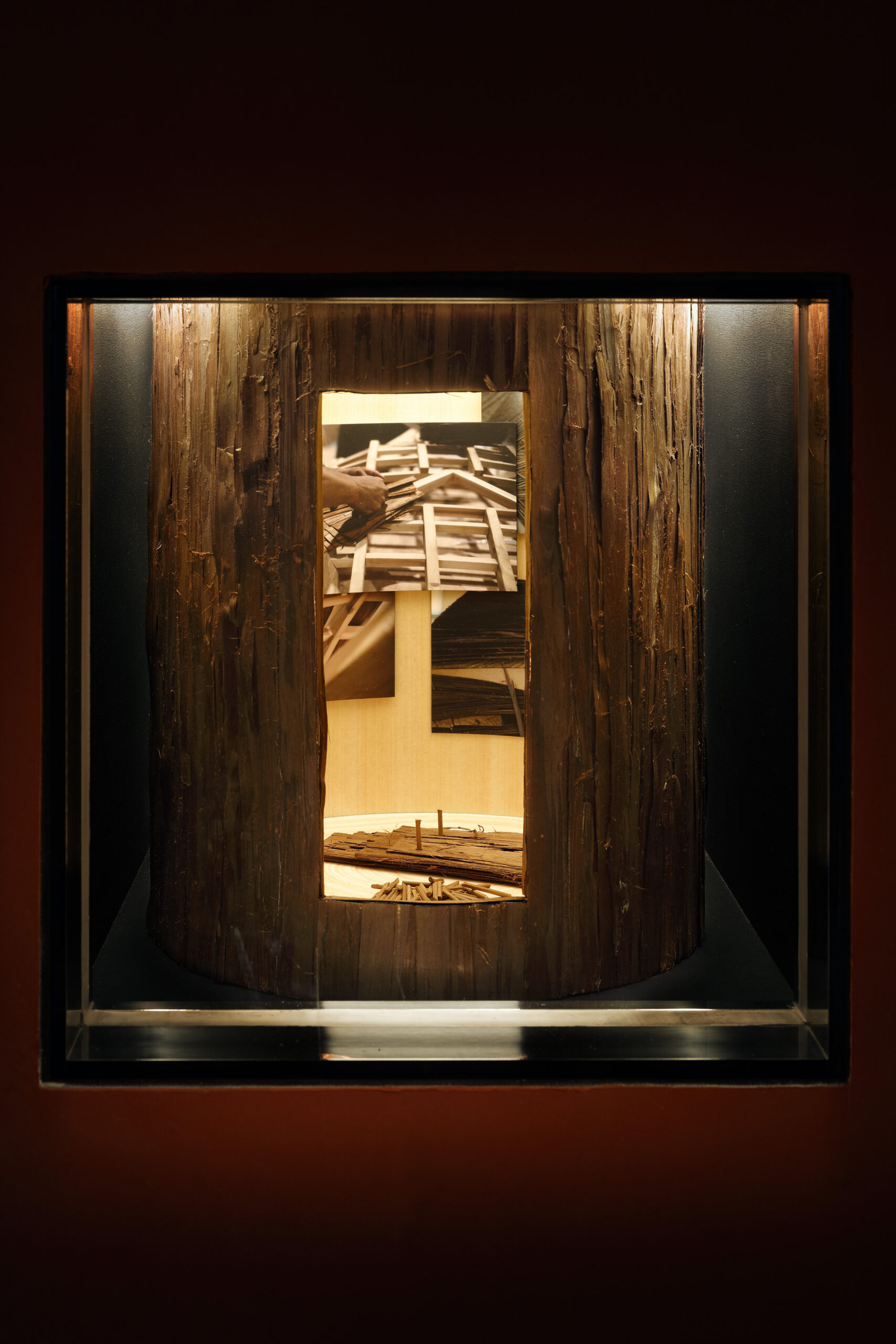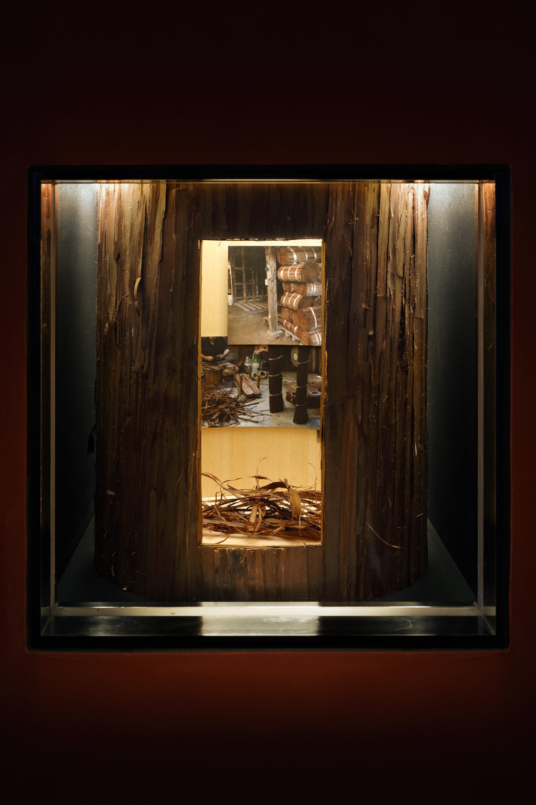 今回の企画は、アートディレクター兼デザイナーの資生堂クリエティブの小林恵理子氏が、「創業以来、万物資生という思想をかかげ、万物と共に私たち資生堂があるということに、あらためて想いを巡らせ未来へのヒントをみつめたい。Personal Forestとはリサーチの中でみつけた“人が1日に必要な酸素量=約8本の木が作る酸素量”という文脈から独自で考えた、人と森の関係性の単位です。檜皮葺を使って人と自然が共存する架空のサスティナブルな空間を作りたい。」という思いが発端でした。 2025年9月から11月にかけて、東京銀座資生堂ビルにて展示された「檜皮葺(ひわだぶき)」をモチーフにしたウィンドウディスプレイ「Personal Forest」。博展は、資生堂クリエイティブの小林氏と共に、デザイン・制作・施工を担当しました。日本の伝統技術と現代のデザインが融合した、新しい表現の可能性を感じさせるウィンドウアート。檜皮葺職人の株式会社友井社寺 友井辰哉さんと共に制作をし、これまでにないショーウィンドウ作品を作り上げました。 |