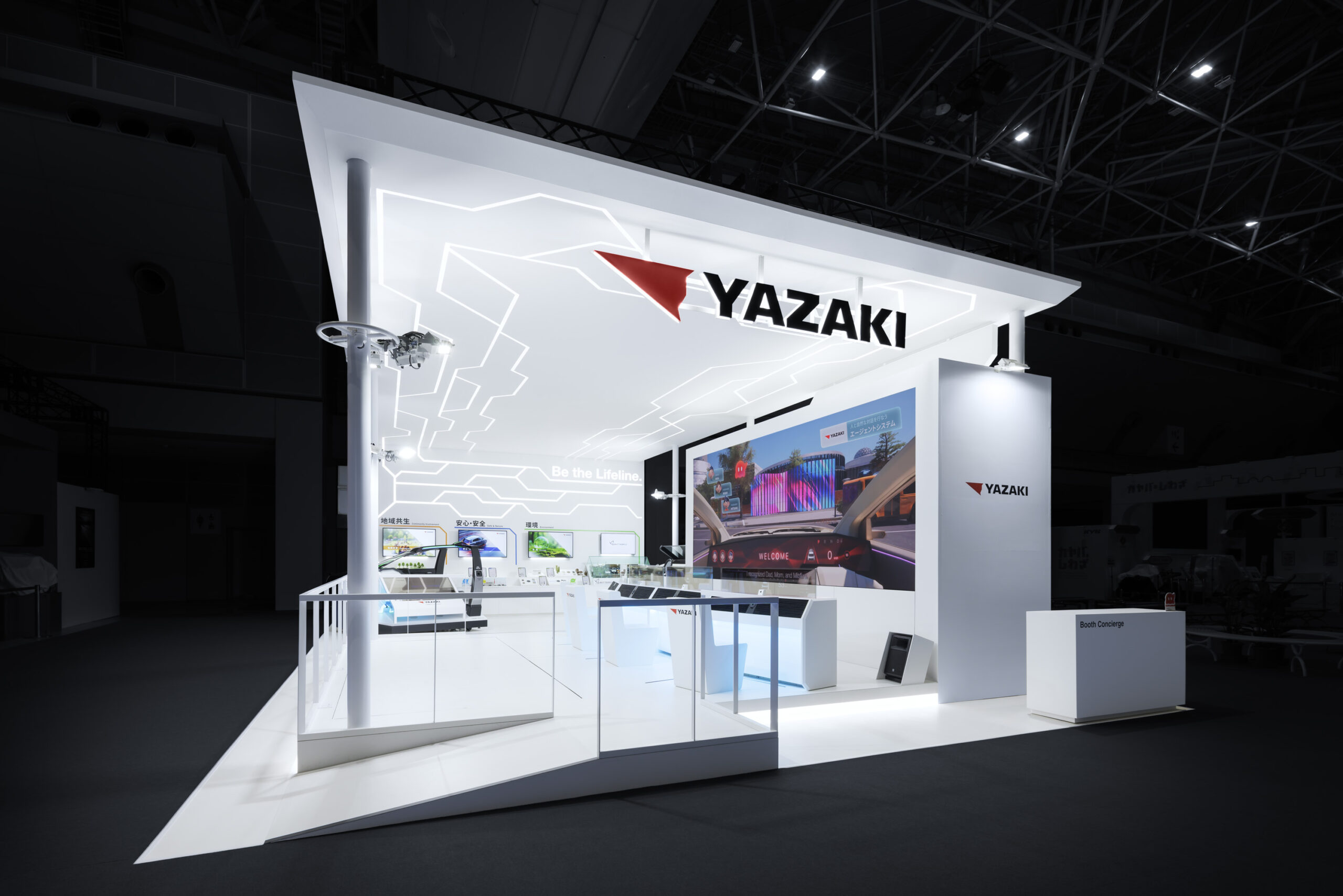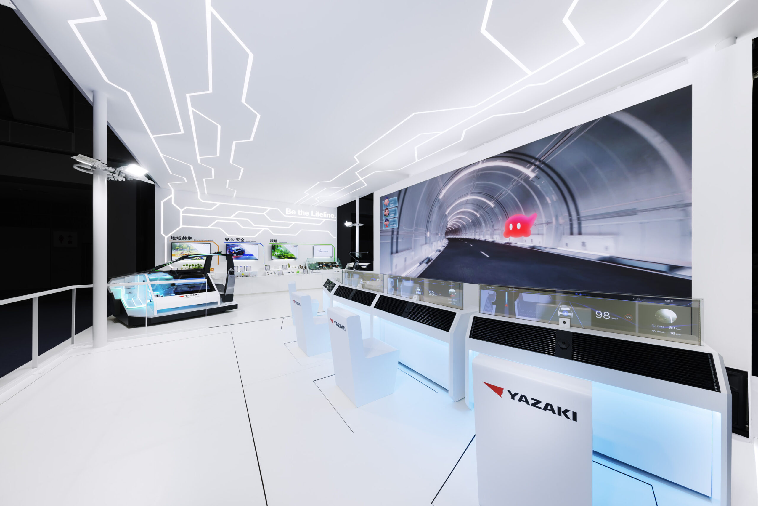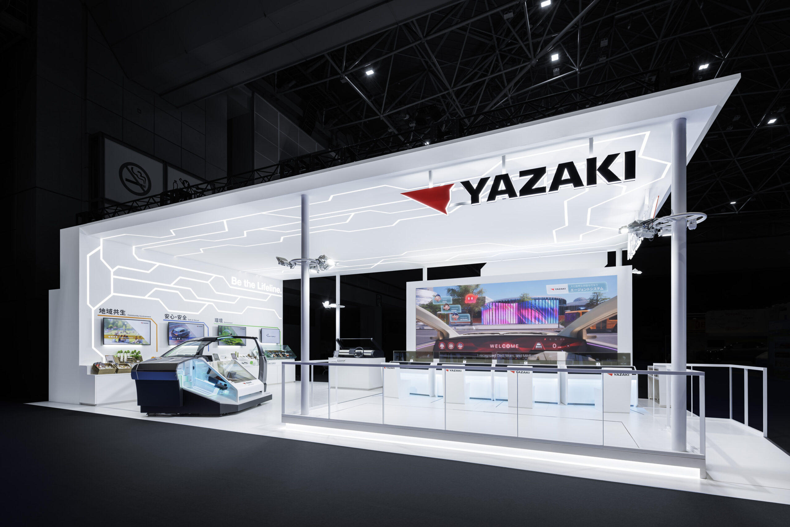 矢崎総業のJapan Mobility Show出展において、課題抽出からストーリー設計、コンセプト策定、体験設計、展示・コンテンツ制作までを一貫して支援。 EV化やモビリティの変革が進む中、ワイヤーハーネス事業を主軸とする矢崎総業にとって、新規事業を含む幅広い取り組みをどのように来場者に伝えるかが課題となっていました。そこで「ワイヤーハーネスの矢崎がなぜ新規事業に挑むのか」という問いに向き合い、ワイヤーハーネスというモビリティの生命線をつなぐことを通じて、社会にとって必要なライフラインであり続けてきた企業姿勢を言語化。出展全体のコンセプトとして「Be the Lifeline.」を策定し、既存事業と新規事業を同じ想いのもとで捉えるストーリーを提示。 メインコンテンツとして没入型シアターを中心に据え、未来の街をドライブする体験を通じて、クルマの安心・安全、環境、地域共生といった矢崎総業の多様な取り組みを直感的に理解できる構成としました。さらに振動、風、香りといった身体感覚を伴う演出を組み合わせることで、業界来場者から一般来場者まで、それぞれの関心に応じて矢崎総業の技術と想いに触れられるブース体験を実現。展示会という場を通じて、矢崎総業の価値を立体的に伝える出展を支援しました。 |